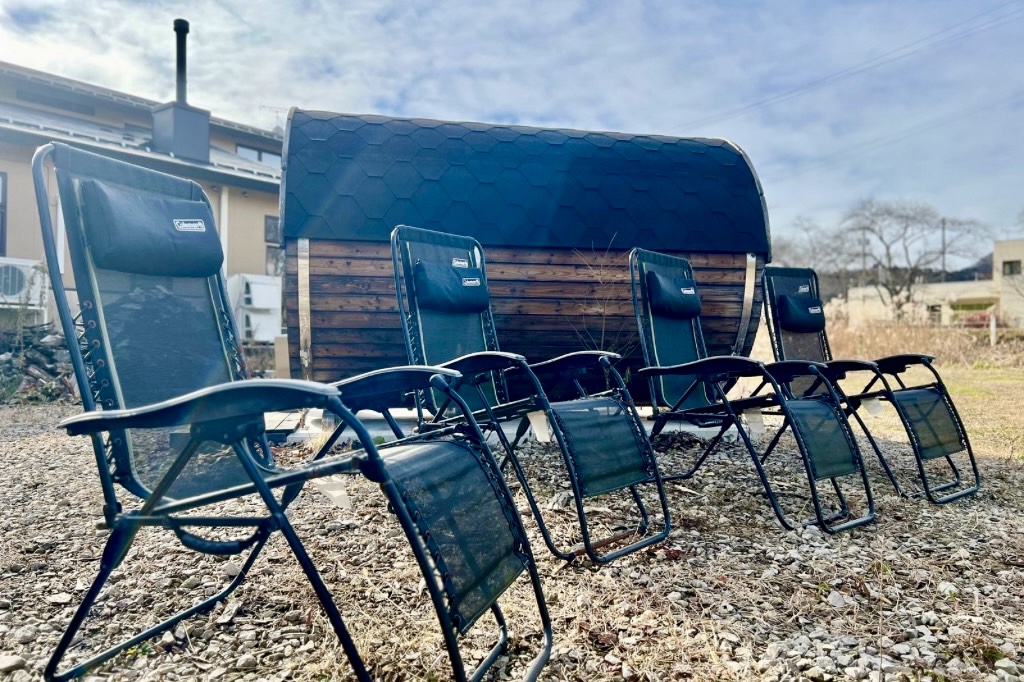 水風呂の後はコールマンのインフィニティチェアで外気浴を楽しみます。